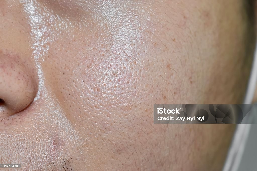 Català: Tipus de pell que produeixen un excés de sèu (greix natural), donant un aspecte brillant i porus dilatats.